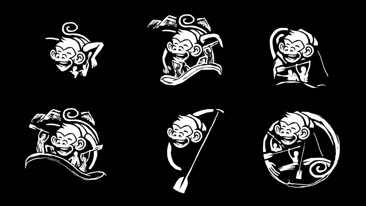 Macaco Branco é uma operadora de rafting de Itapiranga, Santa Catarina, situada na conexão de águas onde o Rio Macaco Branco deságua no Rio Uruguai. Partindo de um nome já definido nosso trabalho foi construir uma identidade visual que traduzisse essa personalidade inovadora e vibrante. A figura central da marca é o macaco, uma homenagem à espécie nativa da região que dá nome ao rio e reforça o vínculo da empresa com o lugar.